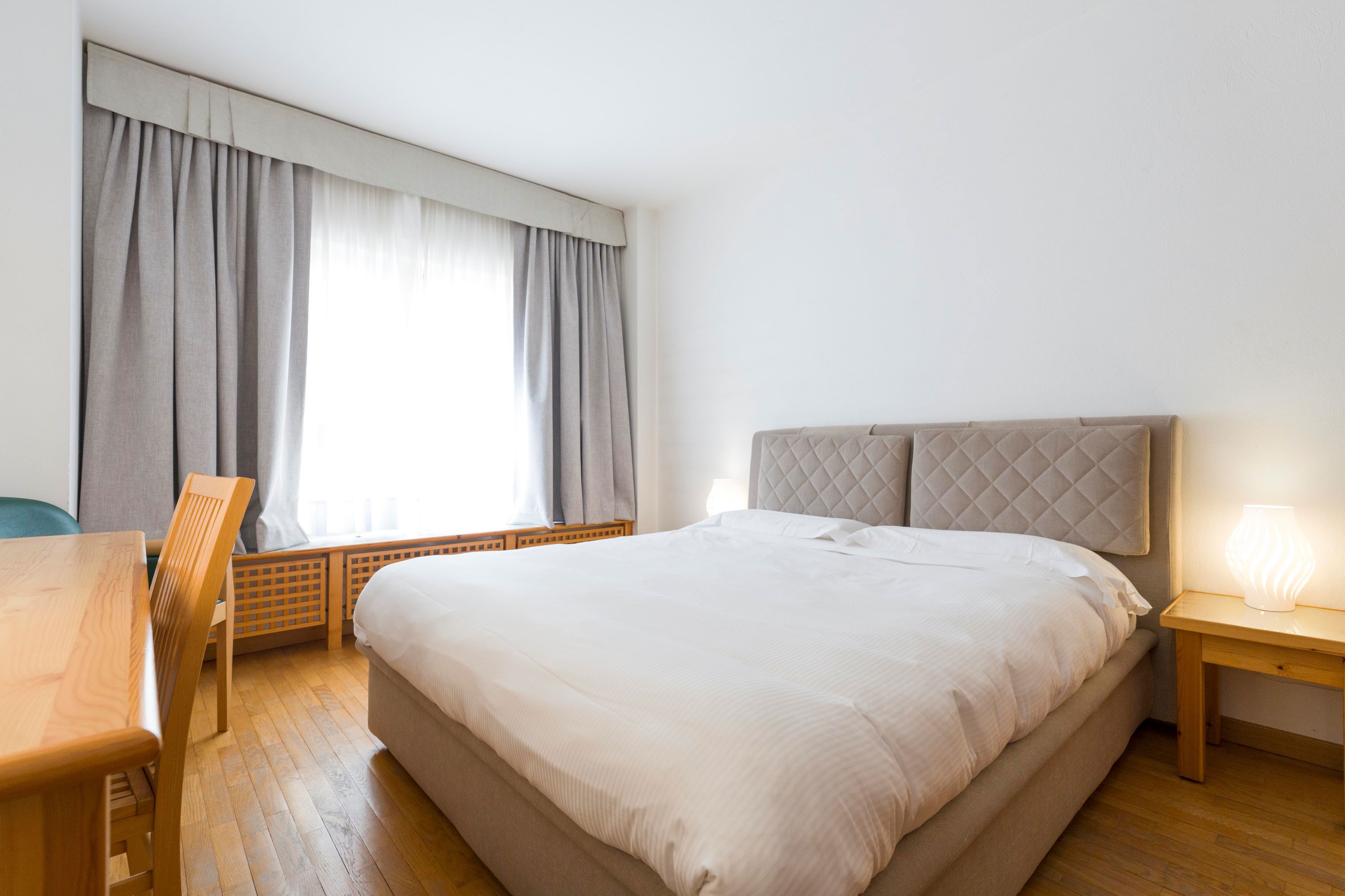 La zona notte è completata da una camera da letto separata con letto matrimoniale a due piazze, ideale per garantire comfort e privacy durante il soggiorno.